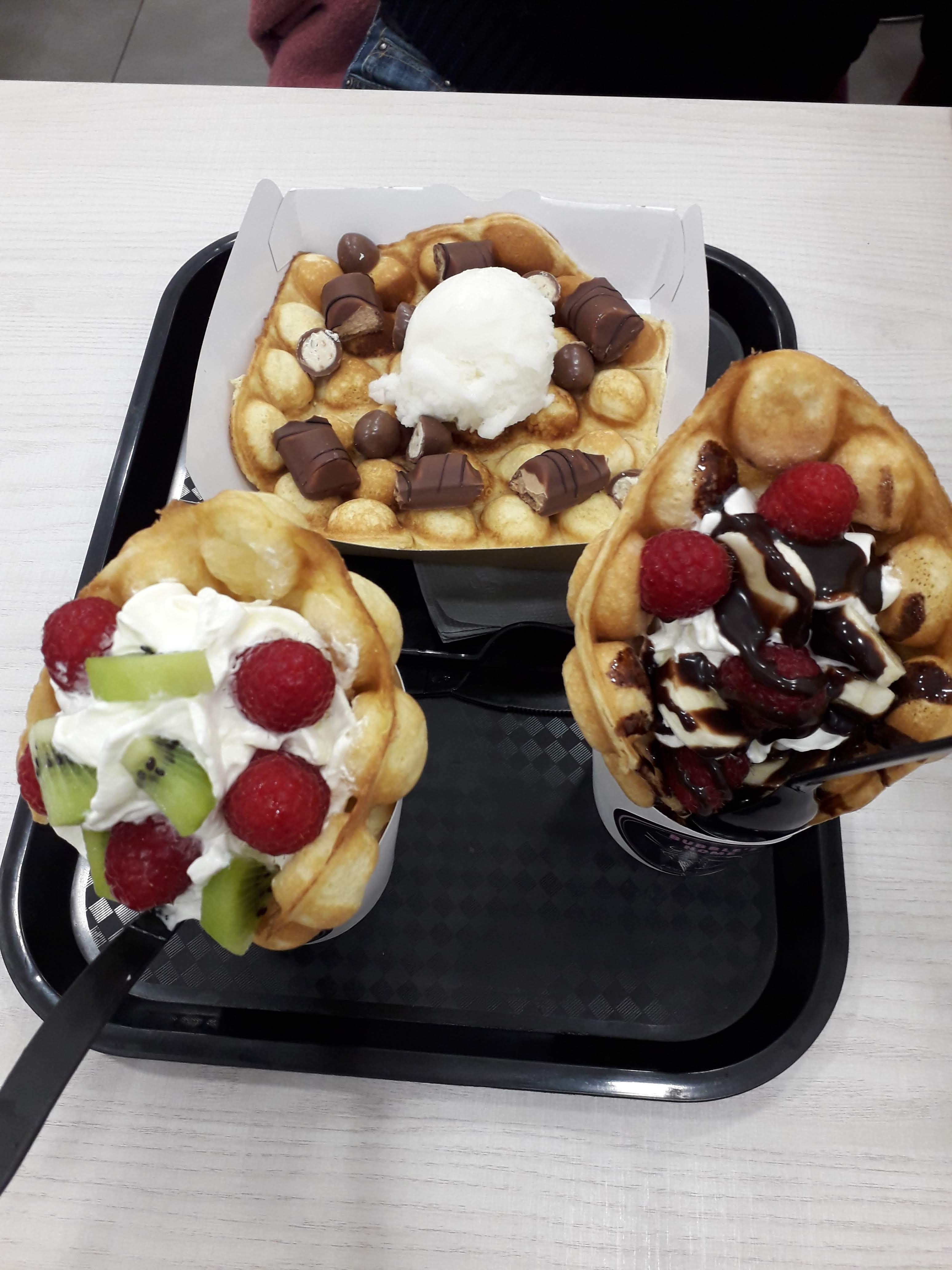 Des gaufres vraiment délicieuse il faut vraiment les goûter je recommande vivement cette enseigne. En ce qui concerne le service Le personnel était très sympathique et souriant. Je reviendrai avec ma femme et mon fils à coup sûr.