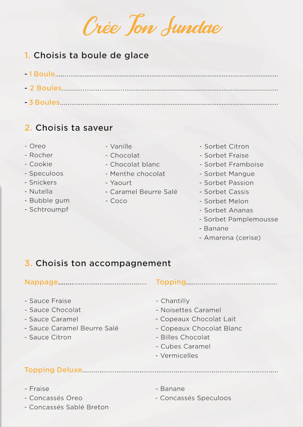 J’avais payer un supplément nutella à ma grande surprise quand j’ai ouvert ma boîte rien. J’ai aussi pris une glace pistache, je goûte et op une glace banane. Donc je ne recommande pas a part peut être si c’est sur place. Mais pas ouf dans l’ensemble