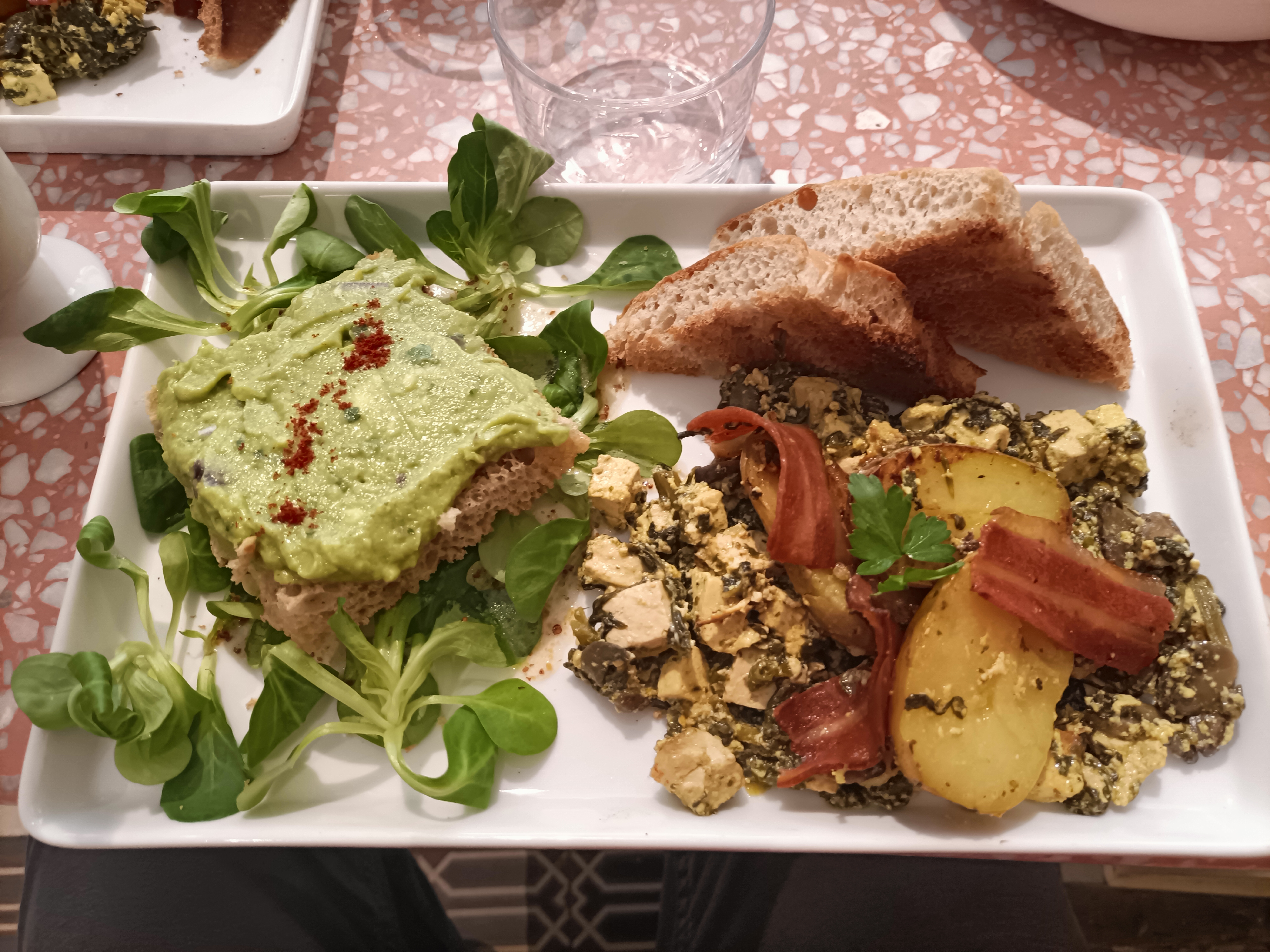 Une très belle adresse pour déjeuner, kidsfriendly, avec une table à langer et des petits jeux, livres à disposition pour les occuper... Il manque juste des chaises hautes. Mais on s'y sent bien. Nous avons composés notre brunch car la formule brunch n'existe plus. Difficile de faire un choix car tout donne envie. Je recommande le plat salé de tartine, 1 tartine avocat +1 tartine œuf champignon faux bacon. C'était super bon alors que je ne suis pas Vegan. Les pâtisseries sont généreuses et excellentes (~6-7€) coup de cœur pour le Mont blanc fruit de la passion !